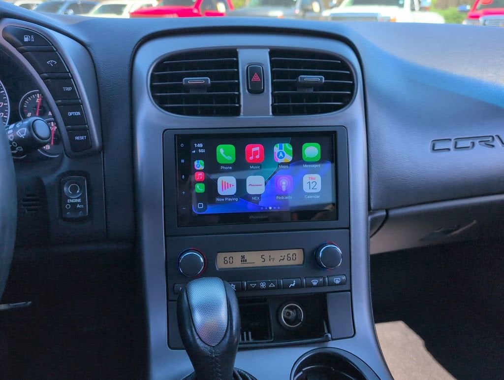 This Corvette is nicely equipped with Enhanced Acoustic Package, Memory Package, Performance Handling Package (Stiffer Springs and Stiffer Stabilizer Bars), 4-Wheel Disc Brakes, 6-Way Power Front Passenger Seat Adjuster, 7 Speakers, ABS brakes, Air Conditioning, Alloy wheels, AM/FM Stereo w/CD/MP3 Playback/Navigation, Automatic temperature control, Body-Color Outside Heated Power-Adjustable Mirrors, Bumpers: body-color, CD player, Compass, Convertible roof lining, Delay-off headlights, Driver & Front Passenger Heated Seats, Driver & Passenger Frontal & Side-Impact Airbags, Driver door bin, Driver vanity mirror, Dual front impact airbags, Dual front side impact airbags, Electronic Stability Control, Four wheel independent suspension, Front anti-roll bar, Front Bucket Seats, Front Center Armrest, Front dual zone A/C, Front fog lights, Front reading lights, Front Sport Bucket Seats, Fully automatic headlights, Glass rear window, Head-Up Display, Heated door mirrors, High-Intensity Discharge Headlights, Highwear Nuance Perforated Leather Seat Trim, Illuminated entry, Inside Rear-View Auto-Dimming Mirror w/Compass, Leather Shift Knob, Leather steering wheel, Low tire pressure warning, Manual Tilt/Power Telescoping Steering Column, Occupant sensing airbag, OnStar 1-Year Safe & Sound Plan, Outside temperature display, Panic alarm, Passenger door bin, Passenger vanity mirror, Power door mirrors, Power driver seat, Power Folding Convertible Top, Power passenger seat, Power steering, Power windows, Radio data system, Rear anti-roll bar, Rear Compartment Area Cargo Net, Rear window defroster, Remote keyless entry, Security system, Speed control, Speed-sensing steering, Sport steering wheel, Steering Wheel Mounted Audio Controls, Tachometer, Tilt steering wheel, Traction control, Trip computer, Universal Home Remote, Variably intermittent wipers, and Voltmeter. Price does not include licensing costs, registration fees, taxes and dealer doc fee of $899.50 which are to be paid by the consumer.
