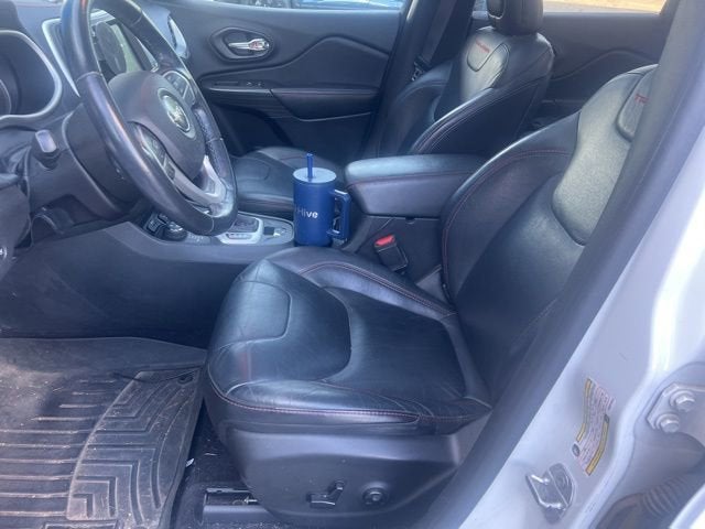 Recent Arrival! Clean CARFAX. Bright White Clearcoat This Cherokee Trailhawk is nicely equipped with Comfort/Convenience Group (Air Conditioning ATC w/Dual Zone Control, Humidity Sensor, Passive Entry/Keyless Go, Power 4-Way Driver Lumbar Adjust, Power 8-Way Driver Seat, Power Liftgate, Premium Air Filter, Rear-View Auto-Dimming Mirror w/Microphone, Remote Proximity Keyless Entry, Remote Start System, Security Alarm, and Universal Garage Door Opener), Leather Interior Group (Heated Front Seats, Heated Steering Wheel, and Leather Trimmed Bucket Seats), Quick Order Package 27E, SafetyTec (Blind Spot & Cross Path Detection, Exterior Mirrors Courtesy Lamps, Exterior Mirrors w/Heating Element, Exterior Mirrors w/Supplemental Signals, ParkSense Rear Park Assist System, and Power Multi-Function Fold Away Mirrors), Trailer Tow Group (7 & 4 Pin Wiring Harness, Auxiliary Transmission Oil Cooler, Class III Receiver Hitch, Jeep Rack Off Road Accessory Kit, and Trailer Tow Wiring Harness), 17 x 7.5 Aluminum Wheels, 4-Wheel Disc Brakes, 6 Speakers, 8.4 Touchscreen Display, ABS brakes, Accent Color Exterior Mirrors, Air Conditioning, Alloy wheels, AM/FM radio: SiriusXM, Anti-whiplash front head restraints, Brake assist, Cloth/Leather/Vinyl Bucket Seats, Compass, Delay-off headlights, Driver door bin, Driver vanity mirror, Dual front impact airbags, Dual front side impact airbags, Electronic Stability Control, Emergency communication system, Engine Oil Cooler, Four wheel independent suspension, Front anti-roll bar, Front Bucket Seats, Front Center Armrest, Front fog lights, Front reading lights, Fully automatic headlights, GPS Antenna Input, Illuminated entry, Integrated Voice Command w/Bluetooth®, Knee airbag, Leather Shift Knob, Low tire pressure warning, Occupant sensing airbag, Off Road Suspension, Outside temperature display, Overhead airbag, Overhead console, Panic alarm, ParkView Rear Back-Up Camera, Passenger door bin, Passenger vanity mirror, Power door mirrors, Power Front/Fixed Rear Full Sunroof, Power steering, Power windows, Radio data system, Radio: Uconnect 8.4, Rear anti-roll bar, Rear reading lights, Rear seat center armrest, Rear side impact airbag, Rear window defroster, Rear window wiper, Remote keyless entry, Roof rack: rails only, Speed control, Speed-sensing steering, Split folding rear seat, Spoiler, Steering wheel mounted audio controls, Tachometer, Telescoping steering wheel, Tilt steering wheel, Traction control, Trip computer, Uconnect Access, Variably intermittent wipers, Voltmeter, and Wheels: 17 x 7.5 Black Painted Aluminum. Price does not include licensing costs, registration fees, taxes and dealer doc fee of $899.50 which are to be paid by the consumer. Mileage is EPA Estimated.19/26 City/Highway MPGCALL NOW! This vehicle will not make it to the weekend!! Mileage is EPA Estimated.