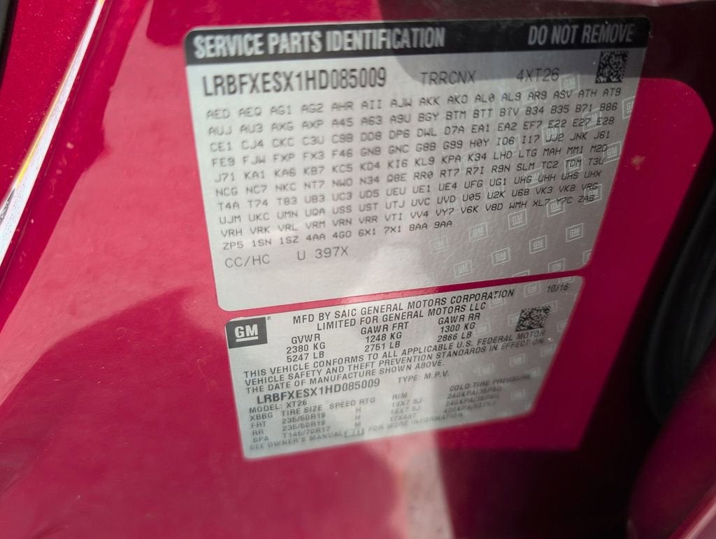 This Envision Premium I is nicely equipped with Preferred Equipment Group 1SN, 3.17 Final Drive Axle Ratio, 4-Wheel Disc Brakes, 7 Speakers, ABS brakes, Air Conditioning, Alloy wheels, AM/FM radio: SiriusXM, Apple CarPlay/Android Auto, Auto-dimming door mirrors, Auto-dimming Rear-View mirror, Automatic temperature control, Bose Premium 7-Speaker System w/Amplifier, Brake assist, Bumpers: body-color, Compass, Delay-off headlights, Driver 8-Way Power Seat Adjuster, Driver door bin, Driver vanity mirror, Dual front impact airbags, Dual front side impact airbags, Electronic Stability Control, Emergency communication system: OnStar Guidance, Exterior Parking Camera Rear, Four wheel independent suspension, Front anti-roll bar, Front Bucket Seats, Front Center Armrest, Front dual zone A/C, Front fog lights, Front Passenger 8-Way Power Seat Adjuster, Front reading lights, Fully automatic headlights, Garage door transmitter, Heated door mirrors, Heated Driver & Front Passenger Seats, Heated front seats, Heated rear seats, Heated steering wheel, Illuminated entry, Knee airbag, Lane Departure Warning System, Low tire pressure warning, Memory seat, Occupant sensing airbag, Outside temperature display, Overhead airbag, Overhead console, Panic alarm, Passenger door bin, Passenger vanity mirror, Perforated Leather-Appointed Seat Trim, Power door mirrors, Power driver seat, Power Liftgate, Power Panoramic Tilt-Sliding Moonroof, Power passenger seat, Power steering, Power windows, Premium audio system: IntelliLink, Radio data system, Radio: Buick IntelliLink AM/FM Stereo, Radio: Buick IntelliLink AM/FM Stereo w/Navigation, Rain sensing wipers, Rear air conditioning, Rear anti-roll bar, Rear reading lights, Rear seat center armrest, Rear side impact airbag, Rear window defroster, Rear window wiper, Remote keyless entry, Roof rack: rails only, Security system, SiriusXM Satellite Radio, Speed control, Speed-sensing steering, Split folding rear seat, Spoiler, Steering wheel mounted audio controls, Tachometer, Telescoping steering wheel, Tilt steering wheel, Traction control, Trip computer, Turn signal indicator mirrors, Variably intermittent wipers, and Wheels: 19 10-Spoke Aluminum. Price does not include licensing costs, registration fees, taxes and dealer doc fee of $899.50 which are to be paid by the consumer.