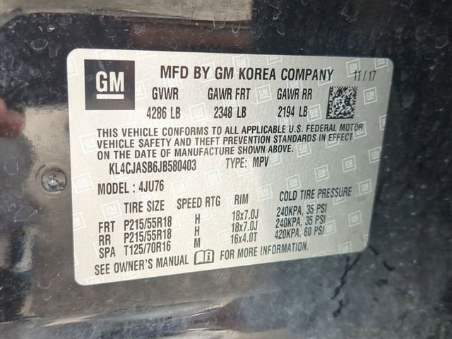 Recent Arrival! Ebony Twilight Metallic This Encore Preferred is nicely equipped with Preferred Equipment Group 1SB, 2-Way Manual Front Passenger Seat Adjuster, 3.53 Final Drive Axle Ratio, 4-Wheel Disc Brakes, 6 Speakers, 6-Speaker Audio System, 6-Way Power Driver Seat Adjuster, ABS brakes, Air Conditioning, Alloy wheels, AM/FM radio: SiriusXM, Apple CarPlay/Android Auto, Brake assist, Bumpers: body-color, Cargo Net, Cloth w/Leatherette Seat Trim, Compass, Delay-off headlights, Driver door bin, Driver vanity mirror, Driver's Seat Mounted Armrest, Dual front impact airbags, Dual front side impact airbags, Electronic Stability Control, Emergency communication system: OnStar Guidance, Exterior Parking Camera Rear, Front anti-roll bar, Front Bucket Seats, Front reading lights, Front wheel independent suspension, Fully automatic headlights, Heated door mirrors, Illuminated entry, Knee airbag, Low tire pressure warning, Occupant sensing airbag, Outside temperature display, Overhead airbag, Panic alarm, Passenger door bin, Passenger vanity mirror, Power door mirrors, Power driver seat, Power steering, Power windows, Radio data system, Radio: Buick Infotainment System AM/FM Stereo, Rear seat center armrest, Rear side impact airbag, Rear window defroster, Rear window wiper, Remote keyless entry, Ride & Handling Suspension, Roof rack: rails only, Security system, SiriusXM Satellite Radio, Speed control, Speed-sensing steering, Split folding rear seat, Spoiler, Steering wheel mounted audio controls, Tachometer, Telescoping steering wheel, Tilt steering wheel, Traction control, Trip computer, Turn signal indicator mirrors, Variably intermittent wipers, and Wheels: 18 Machined-Face Alloy. Price does not include licensing costs, registration fees, taxes and dealer doc fee of $899.50 which are to be paid by the consumer. Mileage is EPA Estimated.25/33 City/Highway MPGCALL NOW! This vehicle will not make it to the weekend!! Mileage is EPA Estimated.