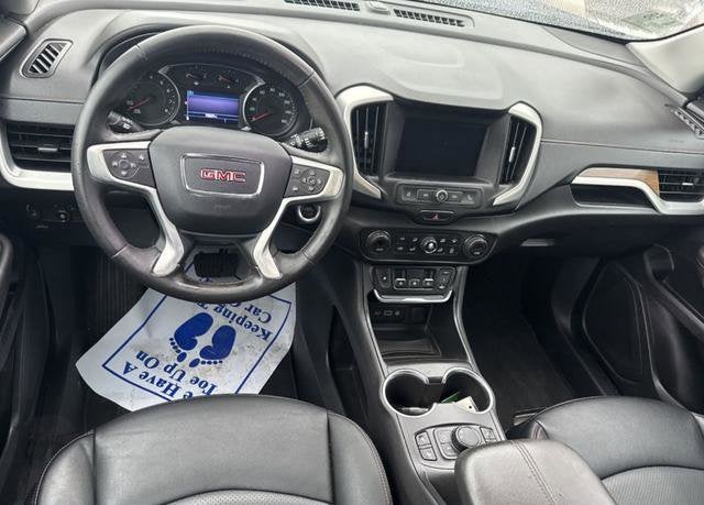 Recent Arrival! CARFAX One-Owner. Blue Emerald Metallic This Terrain SLE is nicely equipped with Driver Alert Package I (Adaptive Cruise Control - Camera, Lane Change Alert w/Side Blind Zone Alert, Outside Heated Power-Adjustable Mirrors, Rear Cross-Traffic Alert, Rear Park Assist, and Safety Alert Seat), Driver Convenience Package (8-Way Power Driver Seat Adjuster, Driver & Front Passenger Heated Seats, Dual-Zone Automatic Climate Control, Power Driver Lumbar Control, Remote Start, and Roof-Mounted Luggage Rack Black Side Rails), Preferred Equipment Group 3SA, 2 USB Data Ports w/Auxiliary Input Jack, 3.47 Axle Ratio, 4-Way Manual Driver's Seat, 4-Way Manual Front Passenger Seat, 4-Wheel Disc Brakes, 6 Speakers, 6-Speaker Audio System Feature, ABS brakes, Air Conditioning, Alloy wheels, AM/FM radio, Apple CarPlay/Android Auto, Auto High-beam Headlights, Auto-dimming Rear-View mirror, Bluetooth® For Phone, Brake assist, Bumpers: body-color, Compass, Delay-off headlights, Driver door bin, Driver vanity mirror, Dual front impact airbags, Dual front side impact airbags, Electronic Stability Control, Emergency communication system: OnStar and GMC connected services capable, Exterior Parking Camera Rear, Four wheel independent suspension, Front anti-roll bar, Front Bucket Seats, Front Center Armrest, Front reading lights, Fully automatic headlights, Heated door mirrors, High-Intensity Discharge Headlights, Illuminated entry, Low tire pressure warning, Occupant sensing airbag, Outside temperature display, Overhead airbag, Overhead console, Panic alarm, Passenger door bin, Passenger vanity mirror, Power door mirrors, Power Programmable Rear Liftgate, Power steering, Power windows, Premium Cloth Seat Trim, Radio data system, Radio: GMC Infotainment Audio System w/7 Display, Rear anti-roll bar, Rear seat center armrest, Rear window defroster, Rear window wiper, Remote keyless entry, Security system, Speed control, Speed-sensing steering, Split folding rear seat, Spoiler, Steering wheel mounted audio controls, Tachometer, Telescoping steering wheel, Tilt steering wheel, Traction control, Trip computer, Variably intermittent wipers, Wheel Locks, and Wheels: 17 x 7 Silver Painted Aluminum. Price does not include licensing costs, registration fees, taxes and dealer doc fee of $899.50 which are to be paid by the consumer. Mileage is EPA Estimated.26/30 City/Highway MPGCALL NOW! This vehicle will not make it to the weekend!! Mileage is EPA Estimated.