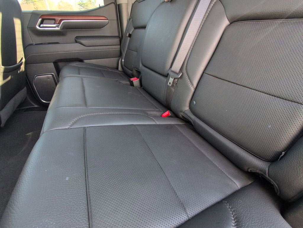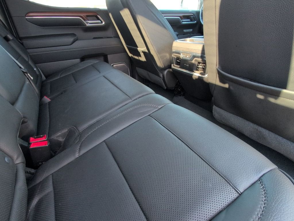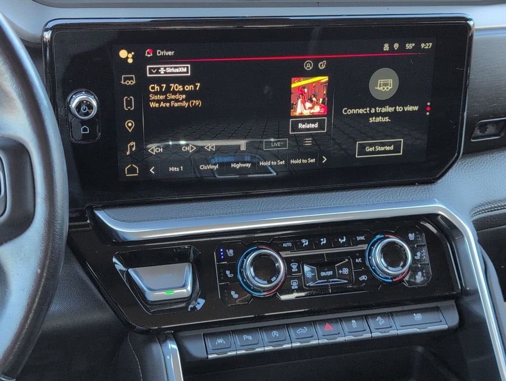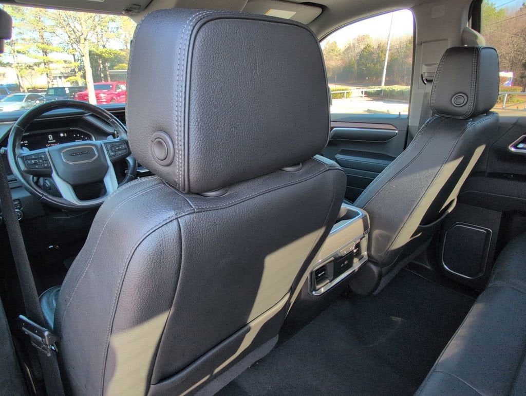 This Sierra 1500 Denali is nicely equipped with Preferred Equipment Group 5SA (120-Volt Bed Mounted Power Outlet, 120-Volt Instrument Panel Power Outlet, 170 Amp Alternator, 2 Charge/Data USB Ports Inside Center Console, 2 Type-C Charge-Only Rear USB Ports, 2 USB Ports, Auto-Locking Rear Differential, Auxiliary External Transmission Oil Cooler, Bed View Camera, Chrome Header w/Signature Denali Chrome Grille, Chrome Recovery Hooks, Chrome Wheel To Wheel Assist Steps, Color-Keyed Carpeting Floor Covering, Compass, Deep-Tinted Glass, Electric Rear-Window Defogger, Electrical Steering Column Lock, Floor-Mounted Center Console, Front Rainsensing Wipers, GMC Connected Access Capable, HD Surround Vision, Heated 2nd Row Outboard Seats, Heated Driver & Front Outboard Passenger Seating, Heated Steering Wheel, Heavy-Duty Air Filter, Hill Descent Control, Hitch Guidance w/Hitch View, In-Vehicle Trailering App, Integrated Trailer Brake Controller, Keyless Open & Start, LED Cargo Area Lighting, OnStar & GMC Connected Services Capable, Perimeter Lighting, Power Door Locks, Power Front Passenger Windows w/Express Up/Down, Power Front Windows w/Driver Express Up/Down, Power Rake & Telescoping Steering Column, Power Rear Windows w/Express Down, Power Sliding Rear Window w/Rear Defogger, Premium Bose 7-Speaker Sound System, Push Button Start, Rear Cross Traffic Braking, Rear Pedestrian Detection, Rear Wheelhouse Liners, Remote Vehicle Starter System, SiriusXM w/360L, Spray-On Pickup Bed Liner w/Denali Logo, Steering Wheel Audio Controls, Theft Deterrent System (Unauthorized Entry), Trailer Camera Provisions, Trailer Side Blind Zone Alert, Ultrasonic Front & Rear Park Assist, Universal Home Remote, Ventilated Driver & Front Passenger Seats, Wi-Fi Hotspot Capable, Wireless Charging, and Wireless Phone Projection), Trailering Package (Hitch Guidance), 10-Speed Automatic, 4WD, Jet Black Leather, 10-Way Power Driver Seat Adjuster w/Lumbar, 10-Way Power Passenger Seat Adjuster w/Lumbar, 3 Years of OnStar Safety & Security, 3.23 Rear Axle Ratio, 4-Wheel Disc Brakes, 7 Speakers, ABS brakes, Adaptive suspension, Air Conditioning, Alloy wheels, AM/FM radio: SiriusXM with 360L, Apple CarPlay/Android Auto, Auto High-beam Headlights, Auto-dimming door mirrors, Auto-dimming Rear-View mirror, Automatic Emergency Braking, Automatic temperature control, Brake assist, Buckle to Drive, Bumpers: body-color, Delay-off headlights, Denali Premium Suspension w/Adaptive Ride Control, Driver door bin, Driver Memory, Driver vanity mirror, Dual front impact airbags, Dual front side impact airbags, Electronic Stability Control, Emergency communication system: OnStar and GMC Connected Services capable, Following Distance Indicator, Forge Perforated Leather Seat Trim, Forward Collision Alert, Front anti-roll bar, Front Bucket Seats, Front Center Armrest, Front dual zone A/C, Front fog lights, Front License Plate Kit, Front Pedestrian Braking, Front reading lights, Front wheel independent suspension, Fully automatic headlights, Garage door transmitter, Genuine wood console insert, Genuine wood dashboard insert, Genuine wood door panel insert, Heated door mirrors, Heated front seats, Heated rear seats, Heated steering wheel, Illuminated entry, IntelliBeam Automatic High Beam On/Off, Lane Keep Assist w/Lane Departure Warning, Low tire pressure warning, Memory seat, Navigation System, Not Equipped w/Dynamic Fuel Management, Not Equipped w/Steering Column Lock, Occupant sensing airbag, Outside temperature display, Overhead airbag, Overhead console, Panic alarm, Passenger door bin, Passenger vanity mirror, Power door mirrors, Power driver seat, Power passenger seat, Power steering, Power windows, Premium audio system: GMC Infotainmen