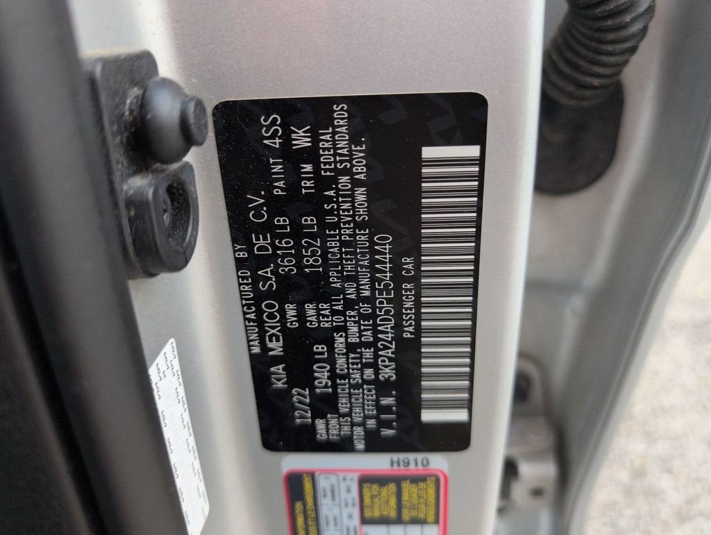 This Rio LX is nicely equipped with Black Cloth, 6 Speakers, ABS brakes, Air Conditioning, AM/FM radio, Brake assist, Bumpers: body-color, Driver door bin, Driver vanity mirror, Dual front impact airbags, Dual front side impact airbags, Electronic Stability Control, Front anti-roll bar, Front Bucket Seats, Front reading lights, Front wheel independent suspension, Fully automatic headlights, Heated door mirrors, Illuminated entry, Low tire pressure warning, Occupant sensing airbag, Outside temperature display, Overhead airbag, Overhead console, Panic alarm, Passenger door bin, Passenger vanity mirror, Power door mirrors, Power steering, Power windows, Radio: AM/FM/MP3 Audio System, Rear window defroster, Speed-sensing steering, Steering wheel mounted audio controls, Tachometer, Tilt steering wheel, Traction control, Trip computer, Variably intermittent wipers, Wheels: 15 x 5.5J Steel w/Full Covers, and Woven & Tricot Cloth Seat Trim. Price does not include licensing costs, registration fees, taxes and dealer doc fee of $899.50 which are to be paid by the consumer.
