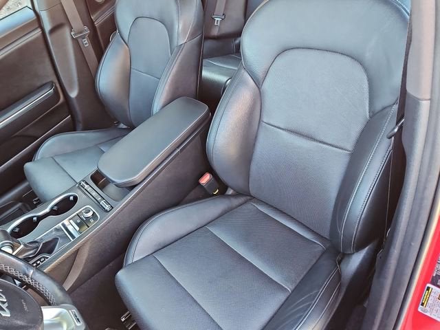 Clean CARFAX. HiChroma Red This Stinger GT-Line is nicely equipped with GT-Line Apex Special Edition Package (Black Exhaust Tips, Black Exterior Mirrors, Black Fender Garnish, Brembo Brakes, and Carbon Fiber Interior Trim), Sun & Sound Package (8-Way Power Adjustable Passenger Seat, Power Tilt & Slide Sunroof w/One-Touch, and Radio: harmon/kardon AM/FM/MP3/HD Audio System), 4-Wheel Disc Brakes, 9 Speakers, ABS brakes, Air Conditioning, Alloy wheels, AM/FM radio: SiriusXM, Anti-whiplash front head restraints, Apple CarPlay & Android Auto, Auto High-beam Headlights, Auto-dimming Rear-View mirror, Automatic temperature control, Brake assist, Bumpers: body-color, Carpeted Floor Mat, Delay-off headlights, Driver door bin, Driver vanity mirror, Dual front impact airbags, Dual front side impact airbags, Electronic Stability Control, Emergency communication system, Exterior Parking Camera Rear, Four wheel independent suspension, Front anti-roll bar, Front Bucket Seats, Front Center Armrest, Front dual zone A/C, Front reading lights, Fully automatic headlights, Heated door mirrors, Heated Front Bucket Seats, Heated front seats, Heated steering wheel, Illuminated entry, Knee airbag, Leather Seat Trim, Low tire pressure warning, Navigation System, Occupant sensing airbag, Outside temperature display, Overhead airbag, Overhead console, Panic alarm, Passenger door bin, Passenger vanity mirror, Power door mirrors, Power driver seat, Power steering, Power windows, Radio: AM/FM/MP3/HD Audio System, Rain sensing wipers, Rear air conditioning, Rear anti-roll bar, Rear seat center armrest, Rear window defroster, Remote keyless entry, Seat Back Cargo Tray, Security system, Smart Key w/ Push Button and Remote Start, Speed control, Speed-Sensitive Wipers, Split folding rear seat, Sport steering wheel, Steering wheel mounted audio controls, Tachometer, Telescoping steering wheel, Tilt steering wheel, Traction control, Trip computer, Turn signal indicator mirrors, Variably intermittent wipers, Wheel Locks, and Wheels: 8.0J x 18 Vertex Alloy. Price does not include licensing costs, registration fees, taxes and dealer doc fee of $899.50 which are to be paid by the consumer. Mileage is EPA Estimated.