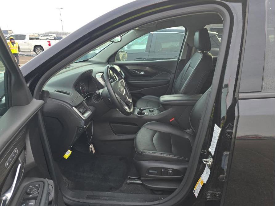This Terrain SLT is nicely equipped with Preferred Equipment Group 4SA, AWD, 2 USB Data Ports, 2 USB Data Ports w/SD Card Reader, 3.47 Final Drive Axle Ratio, 4-Wheel Disc Brakes, 6 Speakers, 6-Speaker Audio System Feature, 6-Way Power Front Passenger Seat, 8-Way Power Driver Seat Adjuster, ABS brakes, Air Conditioning, Alloy wheels, AM/FM radio: SiriusXM, Auto High-beam Headlights, Auto-dimming Rear-View mirror, Automatic temperature control, Bluetooth® For Phone, Brake assist, Bumpers: body-color, Compass, Delay-off headlights, Driver & Front Passenger Heated Seats, Driver door bin, Driver vanity mirror, Dual front impact airbags, Dual front side impact airbags, Electronic Stability Control, Emergency communication system: OnStar and GMC connected services capable, Four wheel independent suspension, Front anti-roll bar, Front Bucket Seats, Front Center Armrest, Front dual zone A/C, Front fog lights, Front Passenger 2-Way Power Lumbar, Front reading lights, Fully automatic headlights, Garage door transmitter, Heated door mirrors, Heated front seats, Heated steering wheel, Illuminated entry, Low tire pressure warning, Memory seat, Occupant sensing airbag, Outside temperature display, Overhead airbag, Overhead console, Panic alarm, Passenger door bin, Passenger vanity mirror, Perforated Leather-Appointed Seat Trim, Power door mirrors, Power Driver Lumbar Control, Power driver seat, Power Liftgate, Power passenger seat, Power steering, Power windows, Radio data system, Radio: GMC Infotainment Audio System w/8 Display, Rear anti-roll bar, Rear seat center armrest, Rear window defroster, Rear window wiper, Remote keyless entry, Roof rack: rails only, Security system, SiriusXM, Speed control, Speed-sensing steering, Split folding rear seat, Spoiler, Steering wheel mounted audio controls, Tachometer, Telescoping steering wheel, Tilt steering wheel, Traction control, Trip computer, Turn signal indicator mirrors, Variably intermittent wipers, Wheels: 18 x 7 Silver Painted Aluminum, and Wireless Apple CarPlay/Wireless Android Auto. Price does not include licensing costs, registration fees, taxes and dealer doc fee of $899.50 which are to be paid by the consumer.